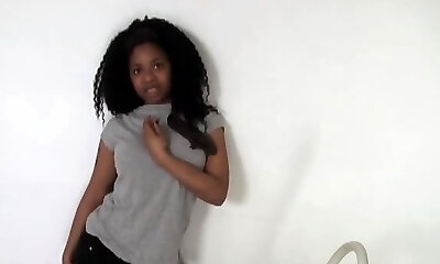 Dark-hued chick with curly hair is up for all sorts insatiable erotic games