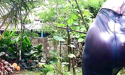 Indian Desi Bhabhi Outside Bathing dressed in watch through nighty and flashing neighbor