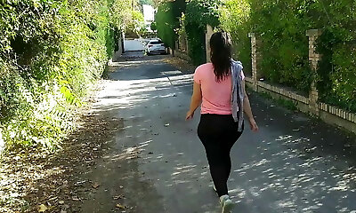 Displaying on the road with big tits