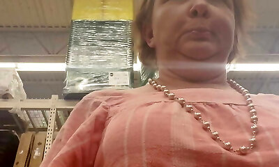 Wifey gets dared to go ambling braless and no panties and show her perfect amazing tits