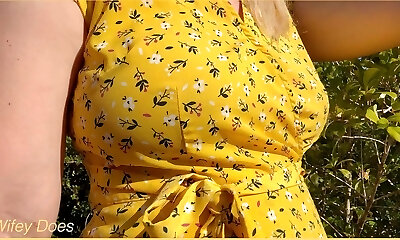 Wife just couldn't help herself and had to unwrap out of her dress on a walk