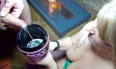 Enslaved slut swallows a cum and piss cocktail – gagging!