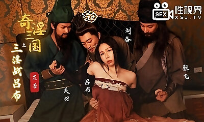 Busty hot Asian wife with sexy cosplay dress have her first time group fucky-fucky with three meaty fuck-sticks