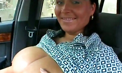 Second job my wife. On side of road in car sexy Milf sucks cock then client fucked pussy and money-shot in protection Big natural bra-stuffers