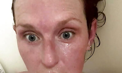 Mommy acclimatises to a mega steaming bath whilst wearing nip clamps