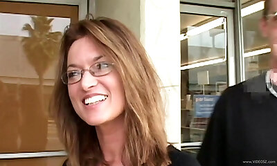 Not too bothered brunette Becky Bandini leans over letting man fuck her