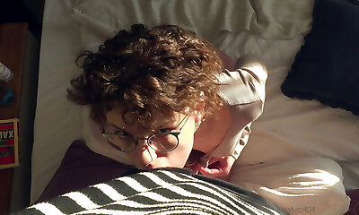 Quite ordinary looking girl Joan does her best while riding fat cock