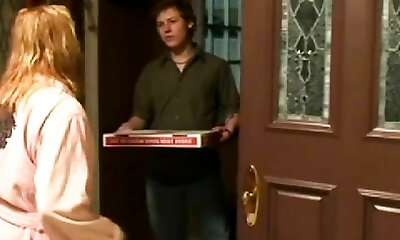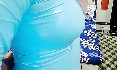 While her boy is downstairs the brunette milf with big tits bounces her immense ass in reverse cowgirl