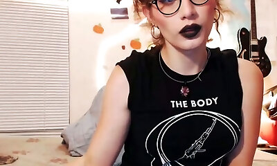 #5 Good-sized tits, Busty, emo cam girl with piercing masturbating