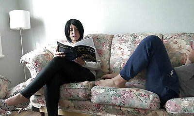 Stepmom is stuck under the ottoman
