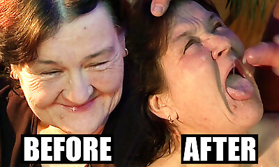 Very old grannie didn't know cum on her face