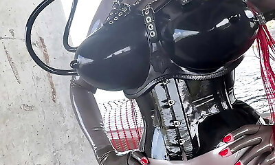 Large orbs brunette femdom Milf in latex get fucked from slave outdoor