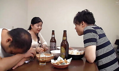 Asian Mummy and Daughter-in-law Share Bed with Roomate and Fuck Him