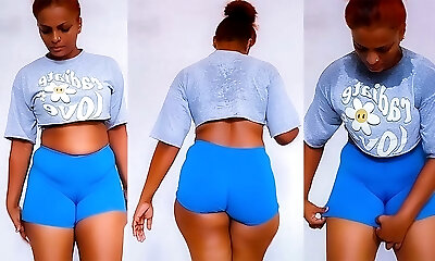 woman in bodysuit wants to show her brilliant muscles, and her big clitoris, beautiful girl